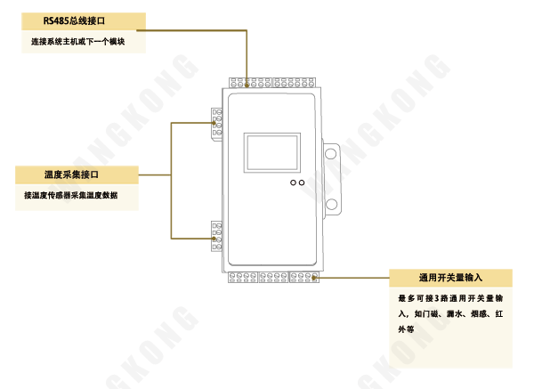 可测量3路开关量,对外置传感器提供+12V/3W电源(可选)。
