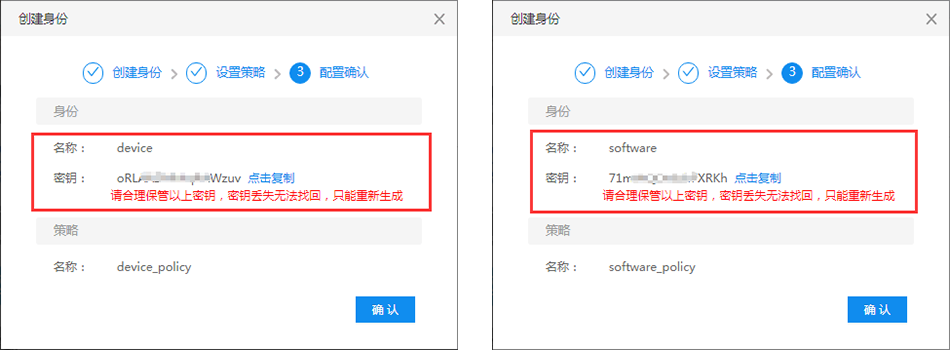 使用广州网控物联网产品接入百度天工物联网中心,首先在天工物接入平台数据型项目管理页面, 「创建用户」、「绑定身份」、「添加身份策略」, 获取用于后续网控设备接入和客户端登录的身 份密钥。