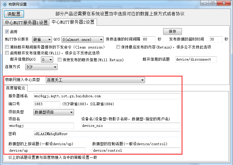 对于无设备概念或深度依赖数据流的物联网场景,将广州网控物联 网产品接入天工物联网(数据型)平台, 可提供MQTT协议层级别的接入支持,用户可对我司物联网产品的MQTT数据流进行二次开发和应用,开发者需搭配规则引擎或自行处理数据流转及存储,需使用者有较强的软硬 件开发能力。
