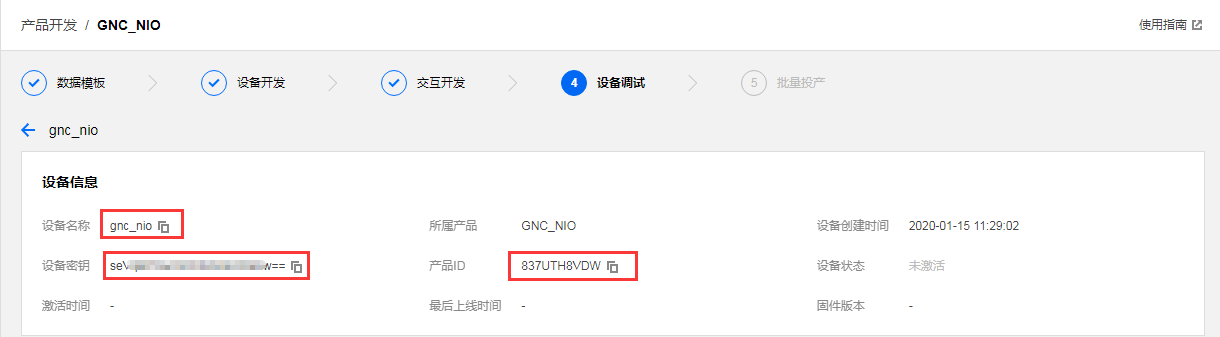 使用广州网控物联网产品接入腾讯云物联网开发平台, 首先需要在腾讯云物联网开发平台创建项目,并在项目下创建产品,定义由我司提供的产品的数据模板。 然后创建设备,即产品对应的真实设备,获取产品ID和设备密钥。