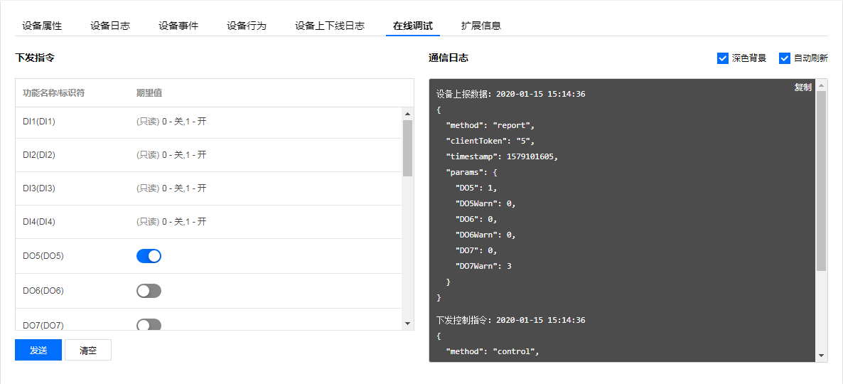 设备启动后,即可在腾讯云物联网开发平台,设备调试页,查看设备运行日志并进行在线调试。