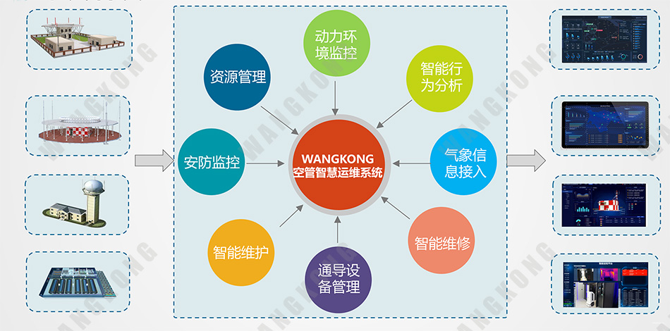 WANGKONG民航空管智慧运维系统可将民航系统所有台站、导航台、雷达站、方舱、航管楼机房、数据中心机房集中统一管理,跨地域远程实时监控,集中化智慧管控。