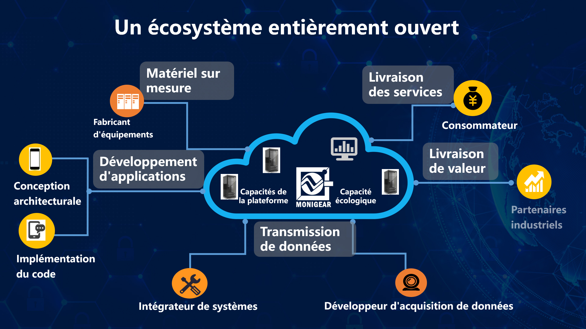 En tirant parti des connaissances industrielles et des perspectives professionnelles de WANGKONG & MONIGEAR, nous analysons et explorons en profondeur les besoins des utilisateurs, développons des produits sur mesure répondant à différentes exigences fonctionnelles, et fournissons des dispositifs IoT avec différentes couches d'acquisition de données et interfaces à travers l'ensemble de l'écosystème. Cela permet une connectivité à large échelle des appareils et des couches stables d'acquisition et de transmission de données, répondant aux exigences de différents scénarios, intégrateurs, fabricants d'appareils et développeurs d'acquisition de données. Nous collaborons avec les développeurs et les partenaires pour construire une chaîne d'écosystème coopératif, ouvrir les portes à la coopération, innover et ajouter de la valeur, et réaliser des bénéfices mutuels et des résultats gagnant-gagnant.