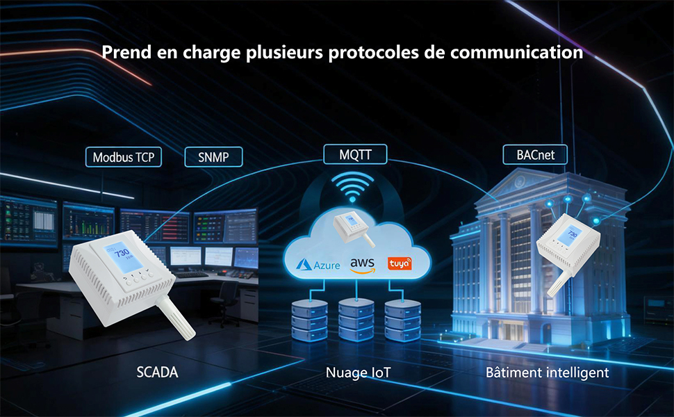 Compatibilité industrielle – prend en charge des protocoles tels que MQTT, BACnet, SNMP et Modbus TCP pour une intégration facile. Nous prenons en charge les protocoles ci-dessus et pouvons fournir des données de plusieurs façons simultanément.