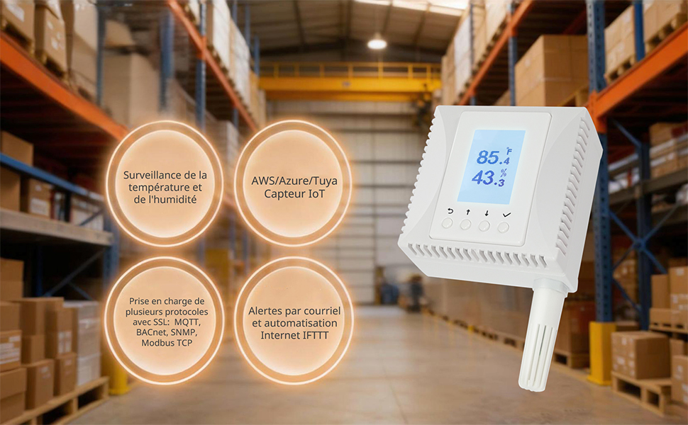 Compatibilité industrielle – prend en charge des protocoles tels que MQTT, BACnet, SNMP et Modbus TCP pour une intégration facile. Nous prenons en charge les protocoles ci-dessus et pouvons fournir des données de plusieurs façons simultanément.